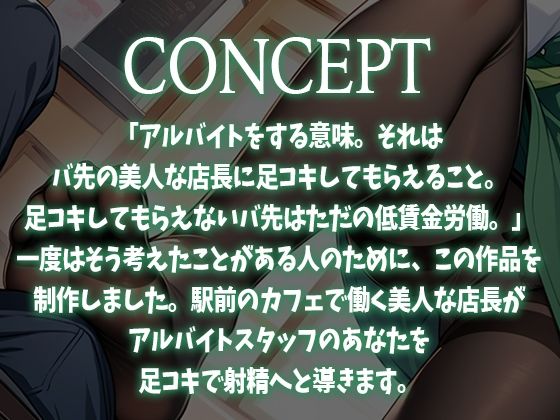 【生牡蠣P】【足コキ特化】駅前カフェの美人で有名な店長はコーヒーを飲むとアルバイトの僕にストッキング足コキしてくる作品情報